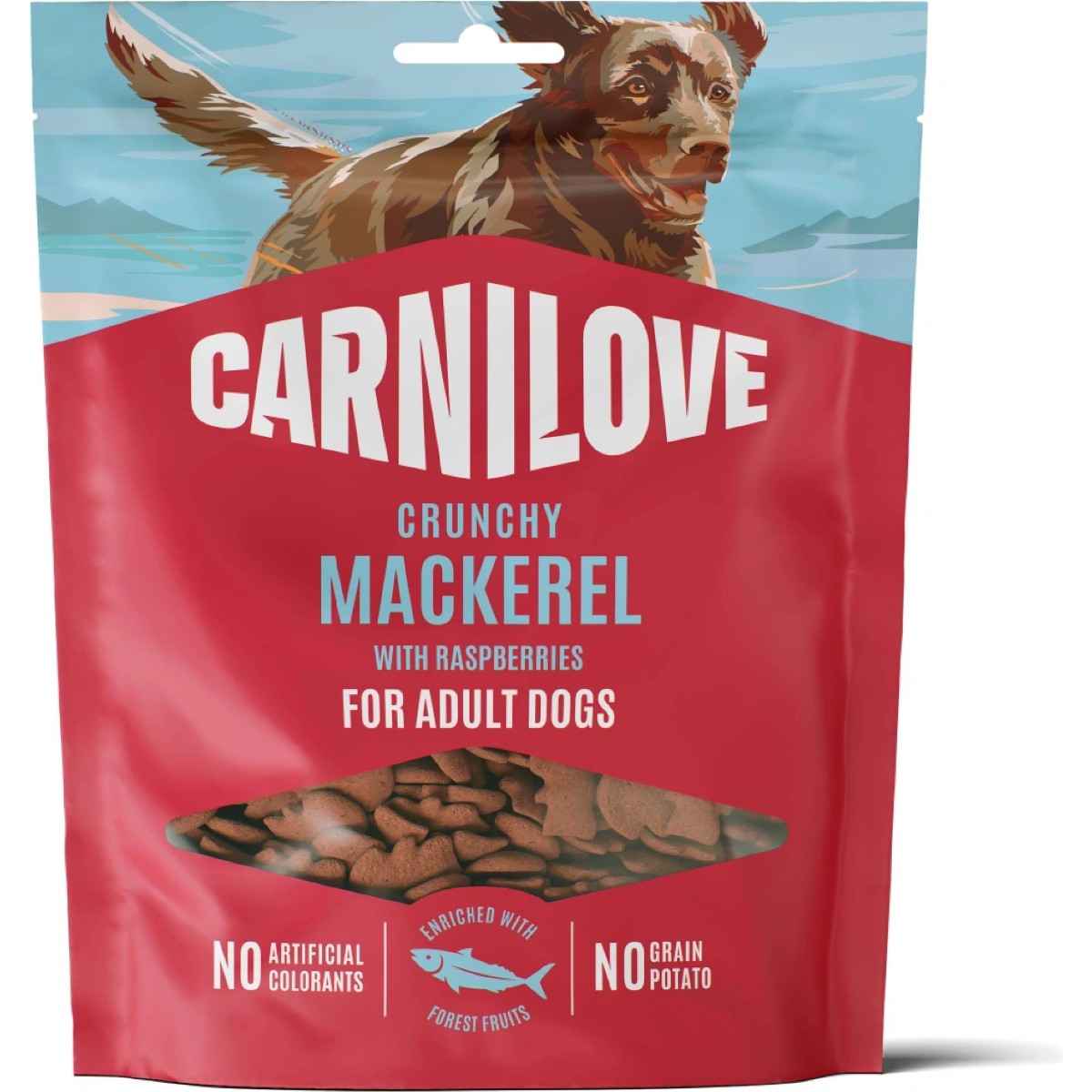 Chrumkavé mäsové maškrty s makrelou a malinami. Pre dospelých psov všetkých plemien.