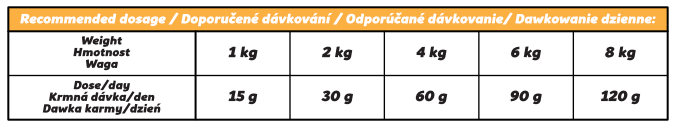 Metabolizovateľná energia: 3 632 kcal/kg