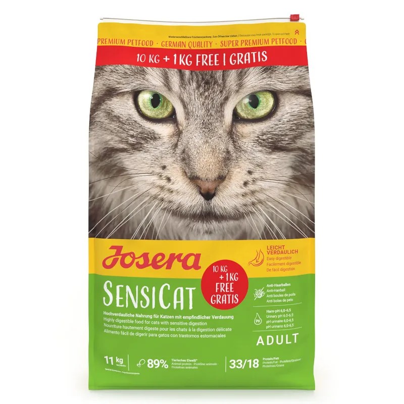 - trávenie: vďaka surovinám v prémiovej kvalite a šetrnému spracovaniu surovín zaručuje Josera SensiCat vysokú stráviteľnosť a ponúka tak optimálne krmivo mačkám s citlivým trávením.