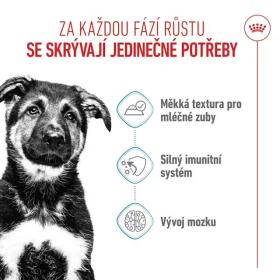 Rast je dôležitou fázou v živote vášho psa: je to obdobie zmien a objavov. Veľké šteňatá potrebujú kompletnú a vyváženú stravu obsahujúcu špecifické živiny, ktoré pri raste podporujú ich zdravie. Zloženie kapsičky pre veľké šteňatá ROYAL CANIN® Maxi Puppy in Gravy je vytvorené tak, aby uspokojovalo všetky nutričné potreby veľkých šteniat mladších ako 15 mesiacov, ktoré budú v dospelosti vážiť medzi 26 a 44 kg.