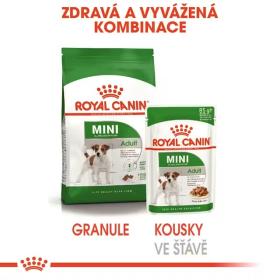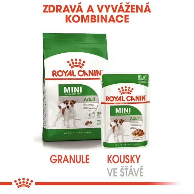 Aby mohlo uspokojiť chute čo najviac psov, krmivo ROYAL CANIN® Mini Adult je dostupné aj ako suché krmivo s chrumkavými a chutnými granulami. Pokiaľ premýšľate nad kombinovaným kŕmením, jednoducho sa riaďte našimi pokynmi, aby váš pes dostával to správne množstvo suchého aj vlhkého krmiva.
