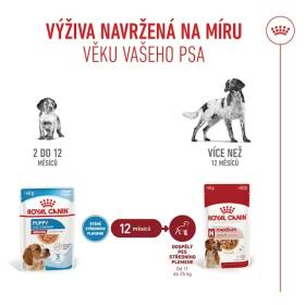 Rast je pre vaše šteňa dôležitým obdobím zmien a objavov. Jeho prirodzená obranyschopnosť sa stále vyvíja. Pretože vaše šteňa rastie, kompletná a vyvážená strava je nevyhnutná pre jeho optimálne zdravie. Zloženie krmiva ROYAL CANIN® Medium Puppy in Gravy je vytvorené tak, aby uspokojilo všetky nutričné potreby šteniat stredných plemien do 12 mesiacov, ktoré budú mať v dospelosti váhu medzi 11 a 25 kg.