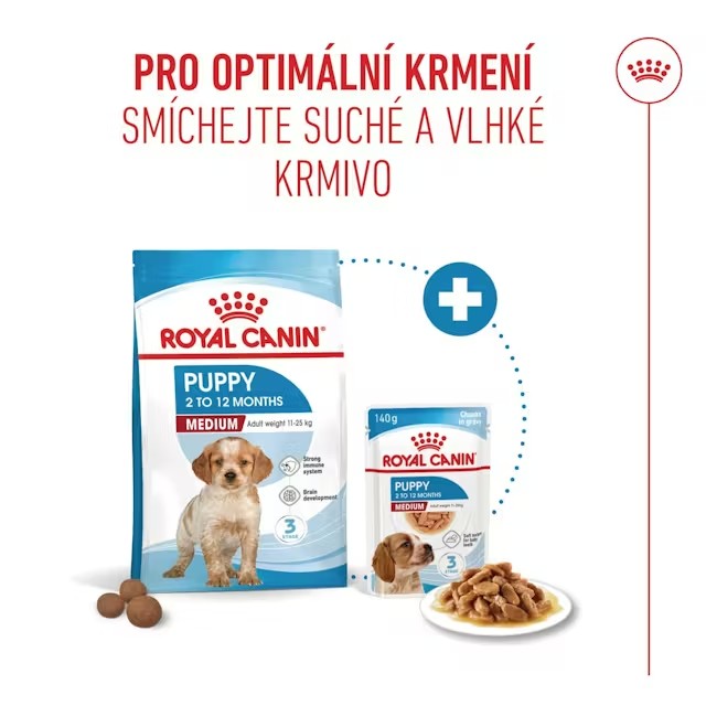 Aby mohlo uspokojiť chute čo najviac psov, krmivo ROYAL CANIN® Medium Puppy je dostupné aj ako suché krmivo s chrumkavými a chutnými granulami.